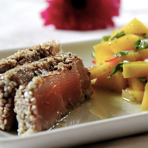 El dulce, el eterno contrapunto culinario de los sabores salados, viene en forma de fruta: ya sea en pedazos, o en compota, son un acompañamiento diferente, sano y delicioso para un buen solomillo de Atún Campos: puré de pera, manzanas asadas, mango y uva troceados…