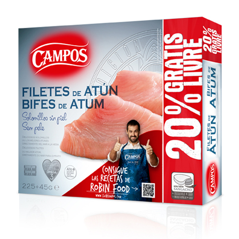 Nuestros Solomillos de Atún Congelados Campos, elegidos Producto del Año 2014 con el Gran Premio a la Innovación, son un alimento imprescindible en la dieta mediterránea. Al tratarse de pescado azul, son fuente natural de Omega 3 y poseen un alto contenido en proteínas. Su falta de carbohidratos los convierten en el complemento más saludable para dietas de adelgazamiento, musculación, o simplemente equilibradas.