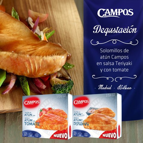 Te animamos a venir a las catas que celebraremos en Madrid y Bilbao y degustar nuestros dos últimos lanzamientos en la línea de productos congelados: Solomillos de Atún Campos en salsa Teriyaki y con Tomate. Tendrás la oportunidad de probar nuestro atún, con la calidad y frescura de siempre, ahora con dos nuevas condimentaciones: la primera con un toque oriental y la segunda con un sabor más clásico.