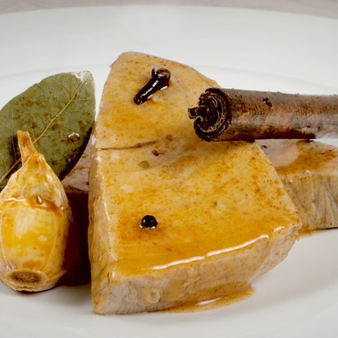 Añadimos los solomillos de atún (previamente salados) para que se confiten durante 10 minutos en el calor residual.